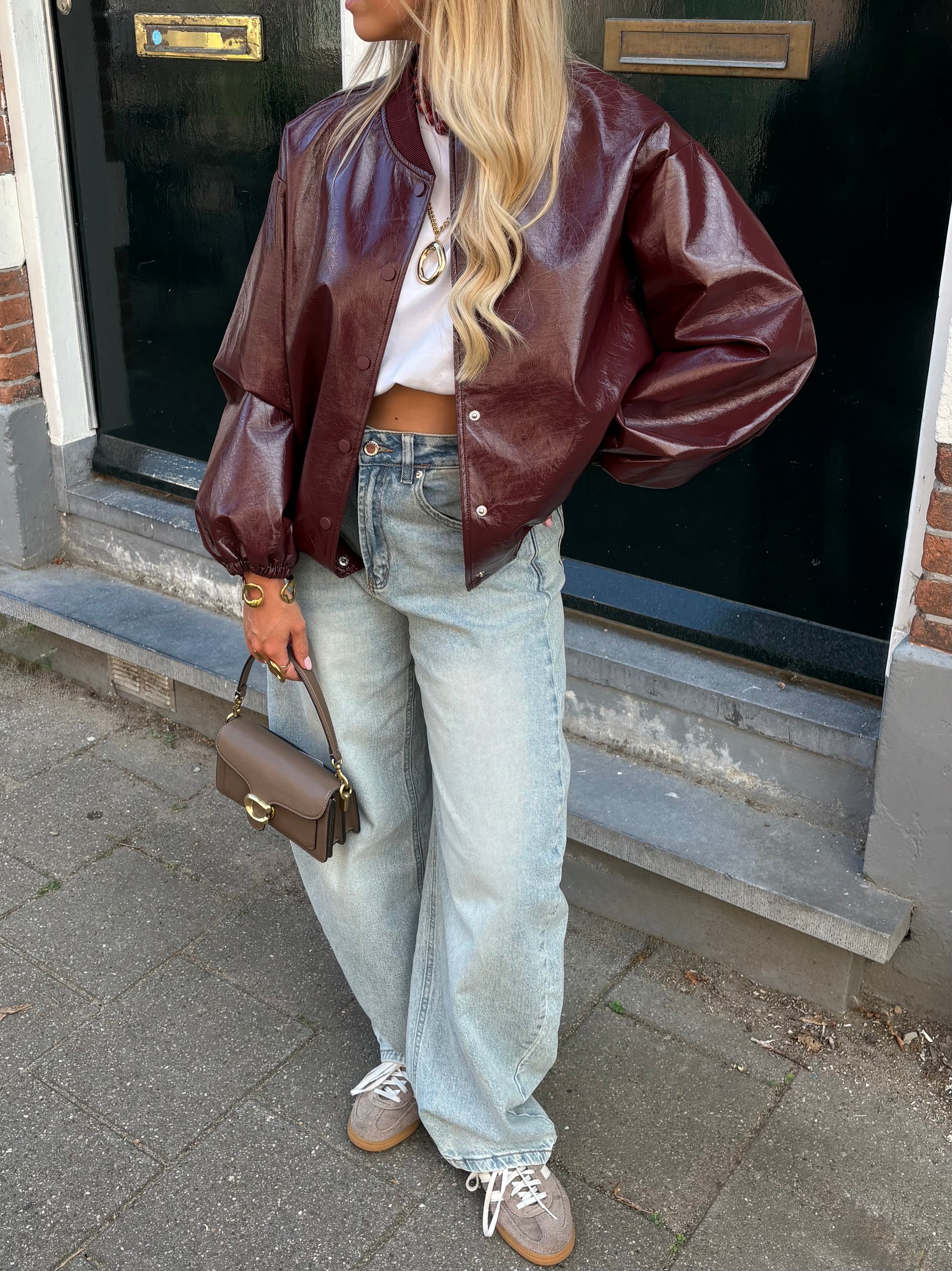 - Details: oversized bomber in dé trendkleur van het moment ❤️, lakleer, bevat geen stretch, bevat zakken, drukknoopsluiting
