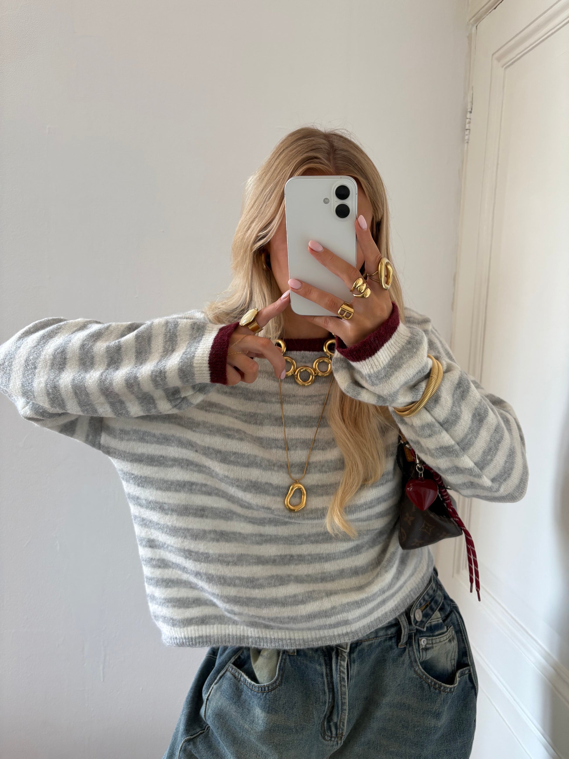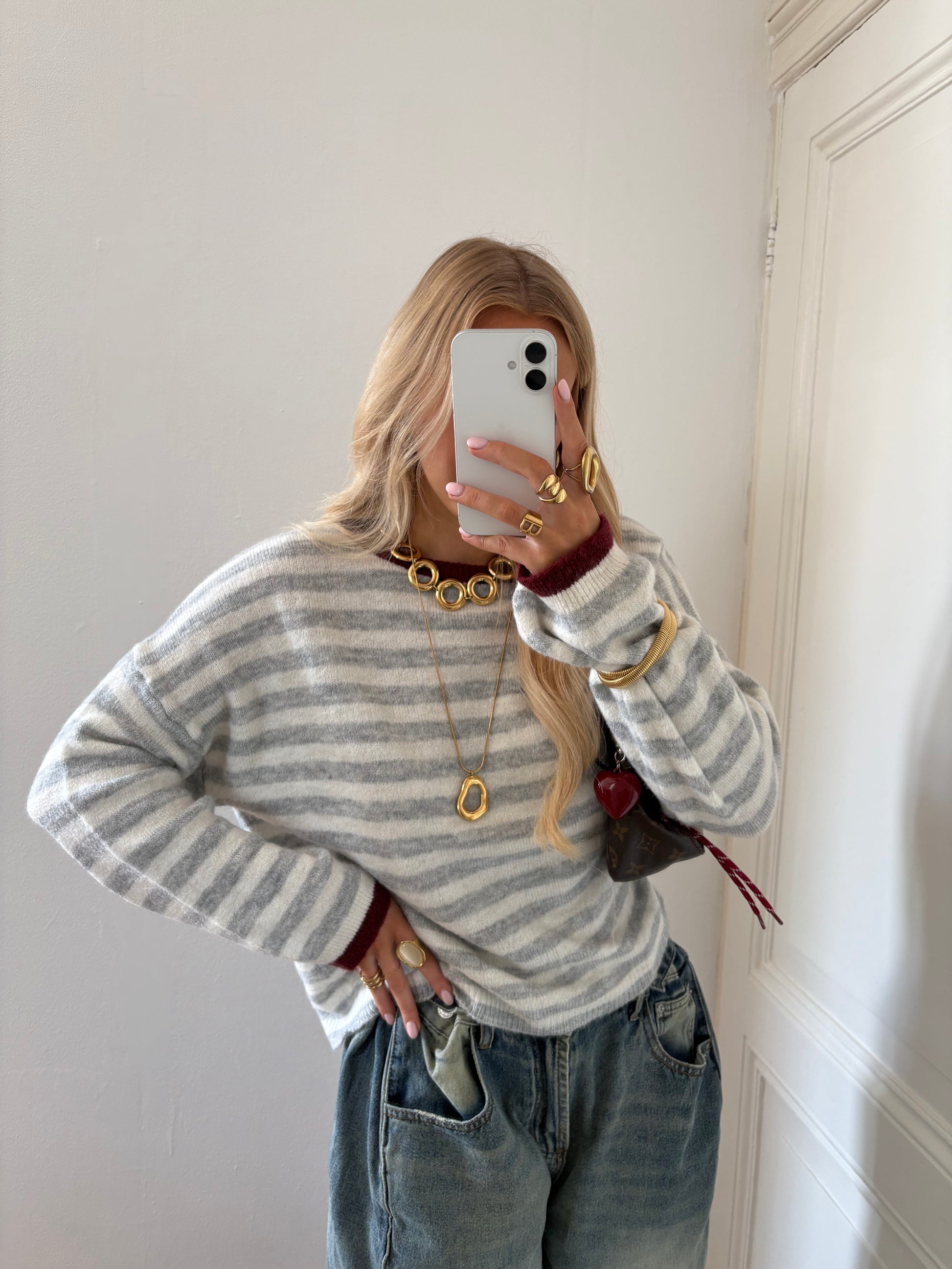 Pre-order Mikky stripes knit grijs / bordeaux