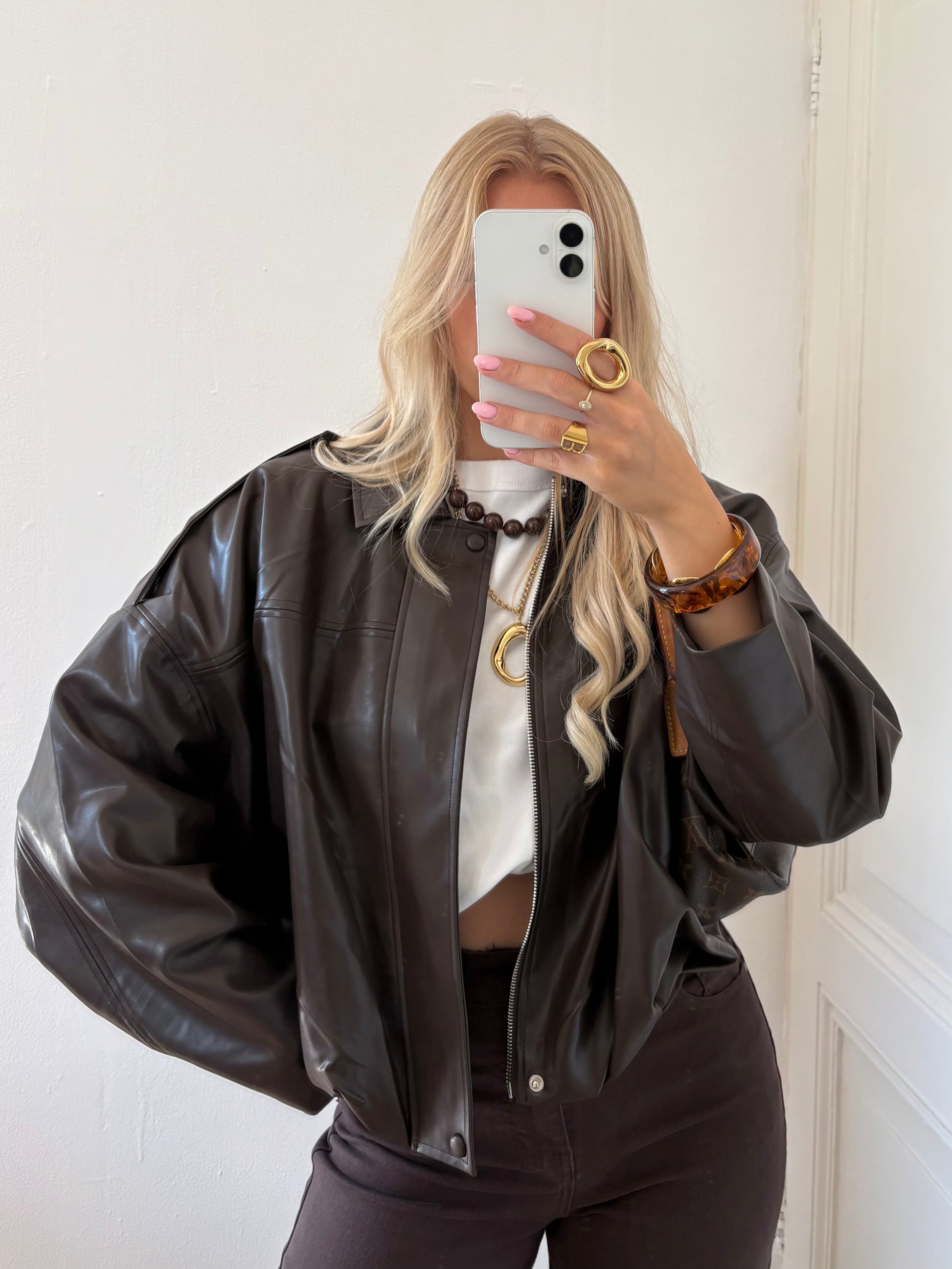 - Details: oversized jacket in dé trendkleur van nu 🤎, chocoladebruin, one size, pu leder, oversized fit, rits- en knoopsluiting
